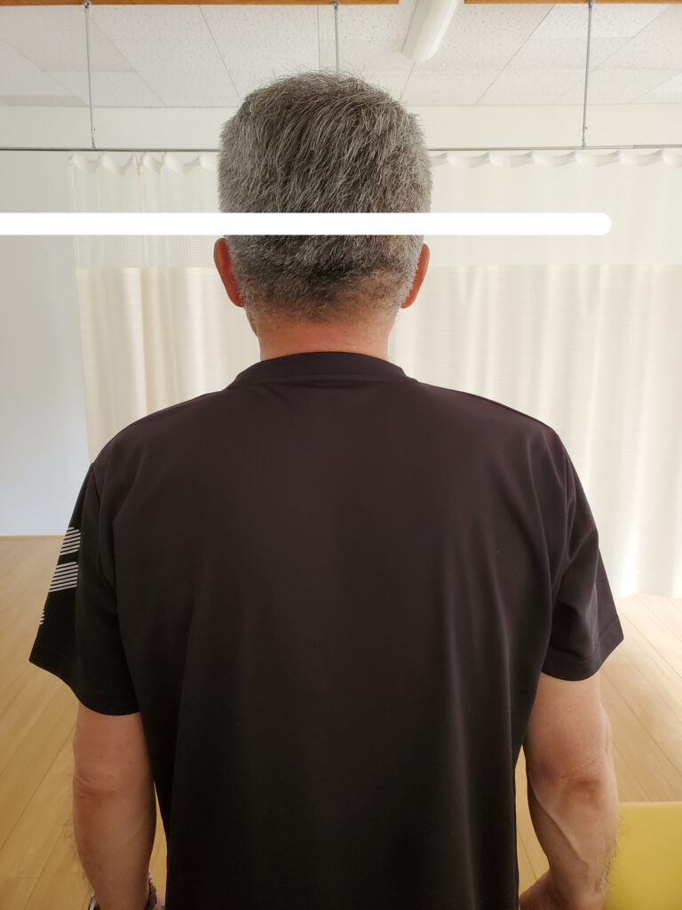 左肩が挙がり、首には非常に強い捻れがありました。